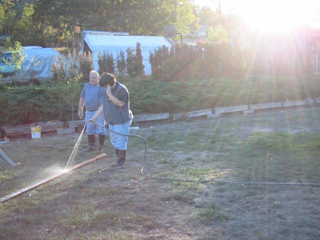 Notice Delaine is even wearing her rubber boots. This is a real family project.