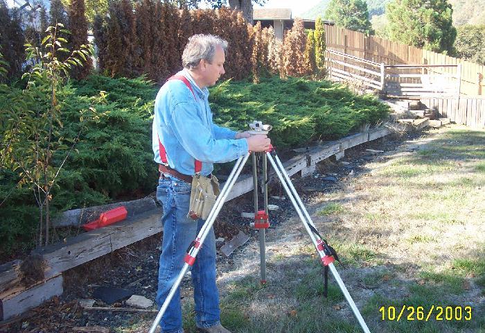 I'm setting up the transit to double check and relevel the forms. This will be the final check.